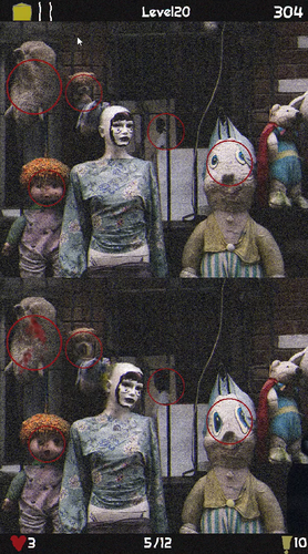 A horror version of "Spot the Difference" with strange/scary images, and jump-scares.