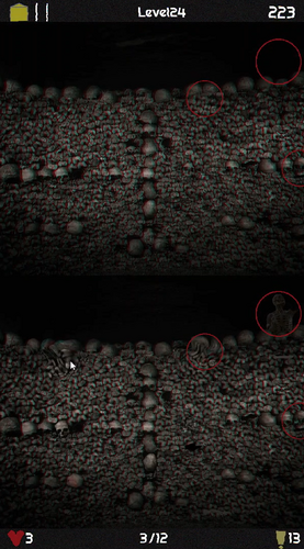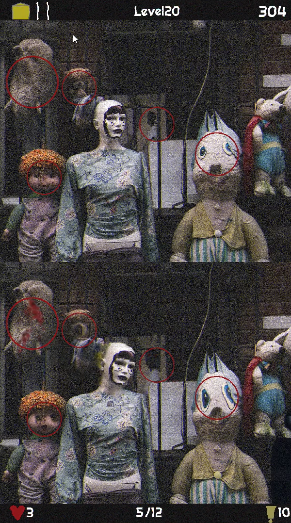 Find all the differences in each image within the given amount of time to avoid jump-scares, and progress through the levels.